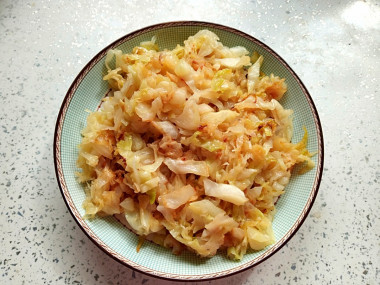 Как сделать начинку? Капусту мелко нарежьте ножом, выложите в миску, добавьте щепотку соли и перетрите руками. Таким образом она станет значительно мягче и сочнее. На сковороду налейте растительное масло, разогрейте его на среднем огне. Выложите капусту и жарьте ее в течение 15 минут, периодически помешивая лопаткой. Затем огонь выключите. По желанию капусту можно обжаривать с репчатым луком или морковью, получится новый и интересный вкус.