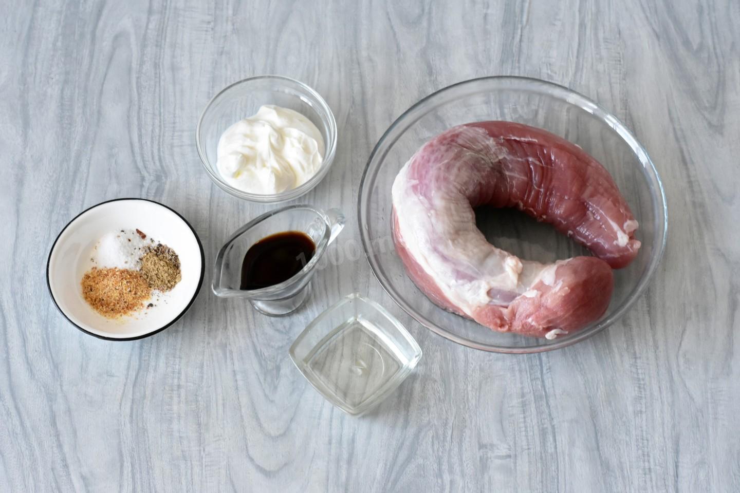 Выложите мясо в миску. Добавьте сметану, соевый соус, сухой чеснок, соль и перец. Все тщательно перемешайте, чтобы все мясо было равномерно покрыто маринадом. Специи можете дополнять по своему вкусу. По этому рецепту можете приготовить другой кусок свинины помимо вырезки. Например, шея, окорок, лопатка. О том, какие части свинины выбрать и какие специи подобрать, читайте в статьях по ссылкам в конце рецепта.