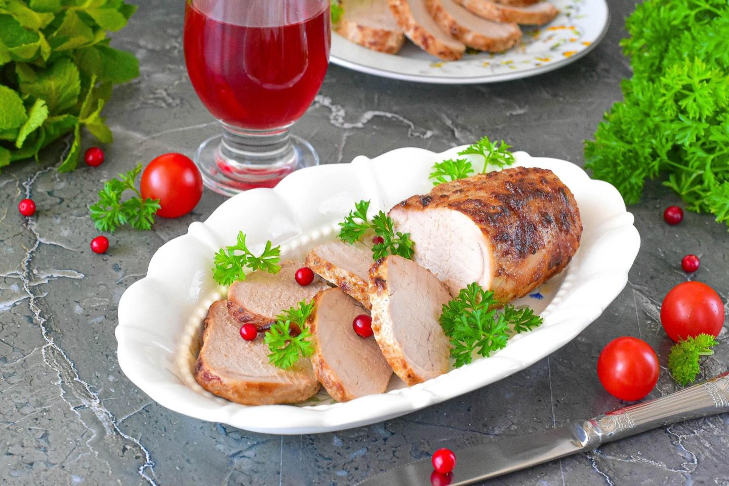 Подавайте свиную вырезку из аэрогриля нарезанной ломтиками с картофельным пюре, тушеными овощами (кабачок, брокколи, морковь), свежим салатом из зелени или гречкой. Идеально дополнит блюдо кисло-сладкий соус, например, клюквенный или на основе горчицы и меда.