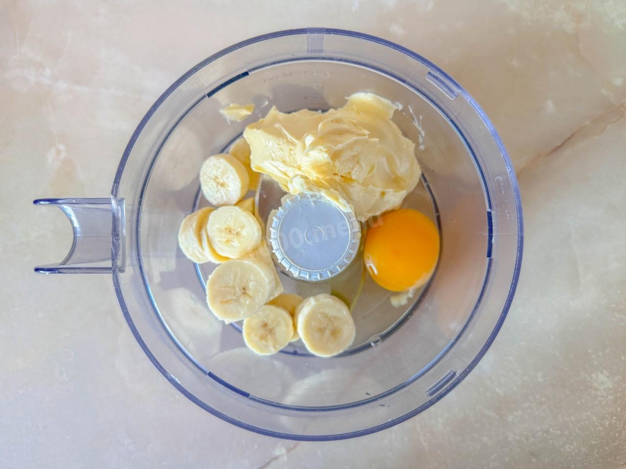 Банан порежьте на небольшие кусочки или поломайте руками. Поместите в чашу блендера банан, масло и яйцо. Все хорошо измельчите и взбейте с помощью блендера. Также банан можно помять вилкой и перемешать все ингредиенты при помощи ручного венчика.