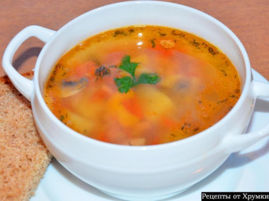 Приготовила супчик с чечевицей, получилось очень вкусно, я еще добавила сладкого болгарского перчика и немного грибочков! Супчик очень ароматный и сытный!