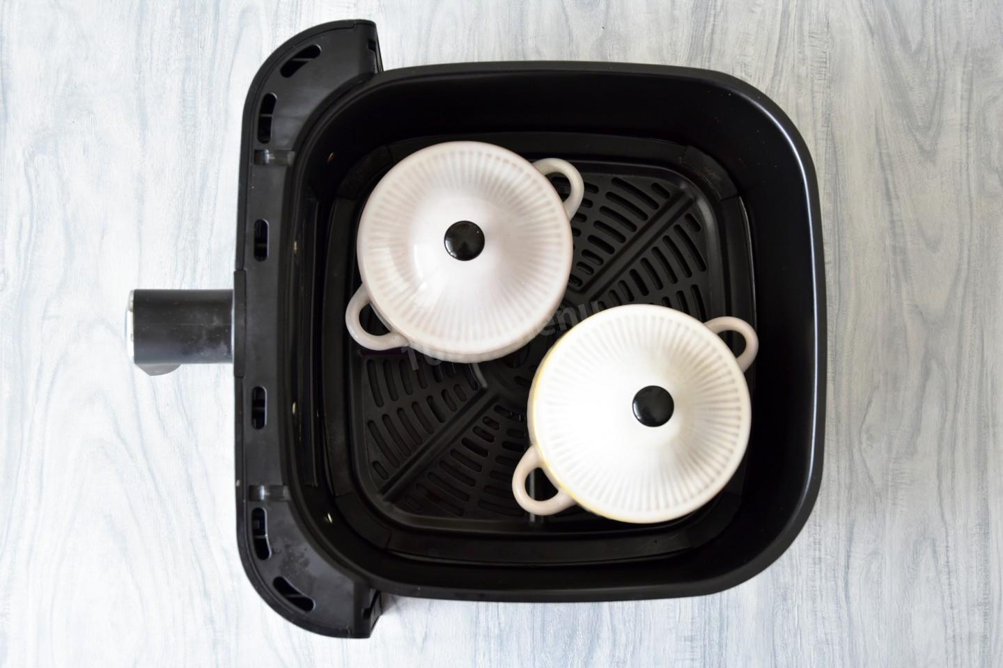 Запекайте мясо с овощами около 25 минут при 200℃. Затем крышки с горшочков снимите и запекайте еще 5 минут. Не треснет ли глиняный горшочек в аэрогриле от высокой температуры? Нет, если использовать термостойкую керамику и избегать резкого перепада температур, например, не ставить холодный горшочек сразу в горячий аэрогриль. Более подробная информация об особенностях запекания в аэрогриле есть в конце рецепта под шагами.