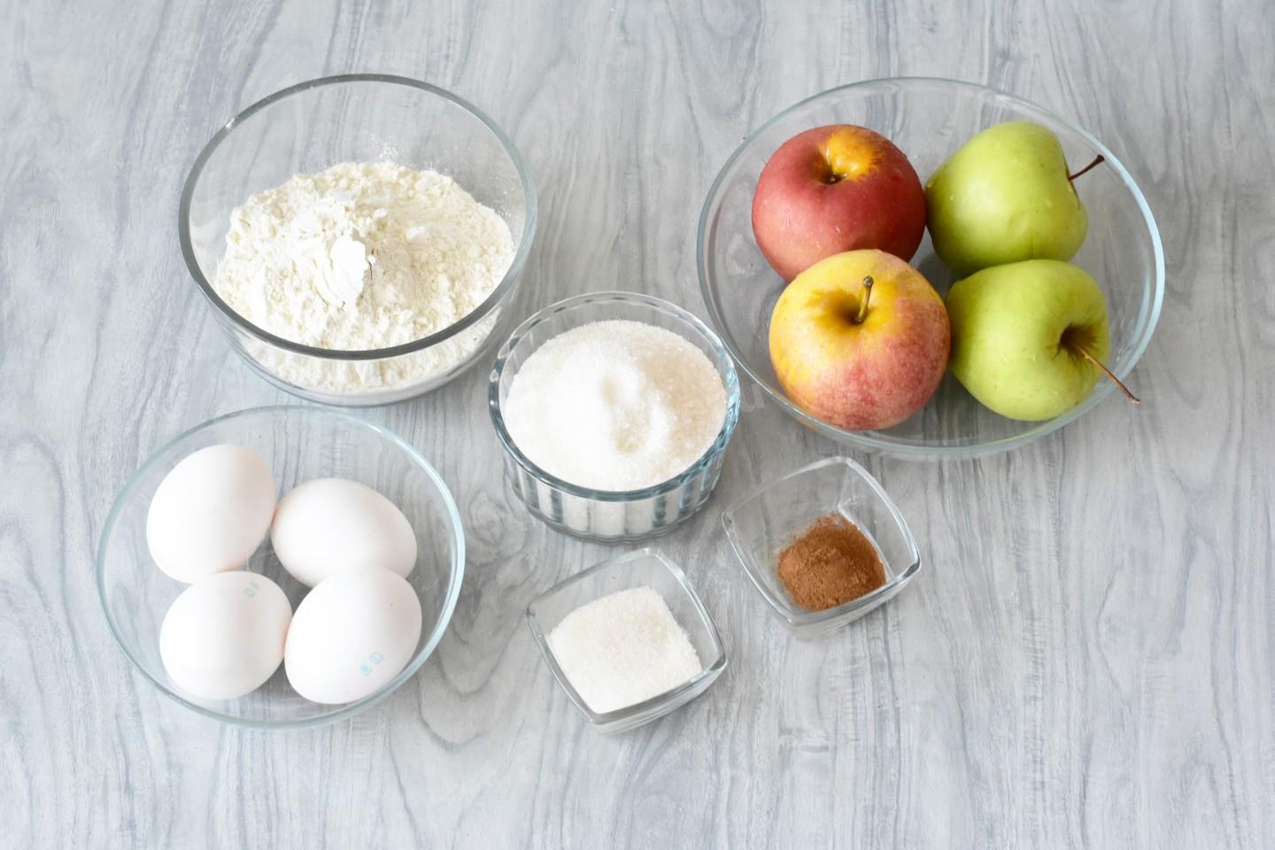 Подготовьте необходимые ингредиенты. Яйца берите крупные отборные. Если яйца мелкие, то лучше возьмите на 1 больше. О тонкостях приготовления пышного бисквита и выборе яблок читайте в отдельных статьях в конце рецепта. Включите аэрогриль разогреваться до 180°С. Если поставить тесто в холодный аэрогриль, оно плохо поднимется.