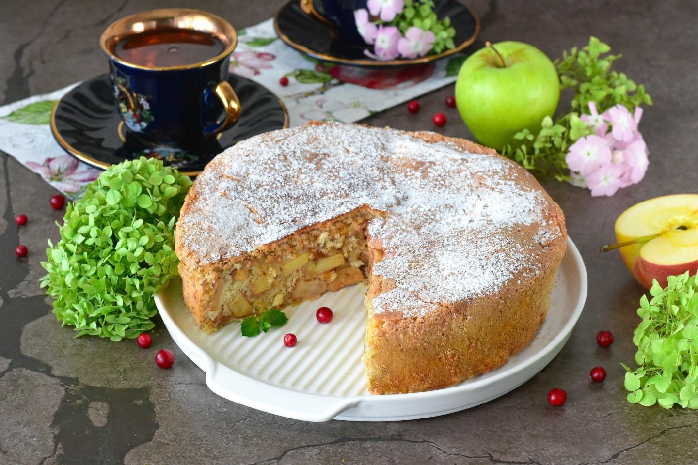 Переложите слегка теплую пышную шарлотку на сервировочное блюдо. Перед подачей щедро посыпьте её сверху сахарной пудрой через мелкое ситечко — это придаст десерту не только сладость, но и эффектный вид. Подавайте к столу с чаем, кофе или молоком. По желанию добавьте шарик ванильного мороженого или взбитых сливок. Приятного аппетита!