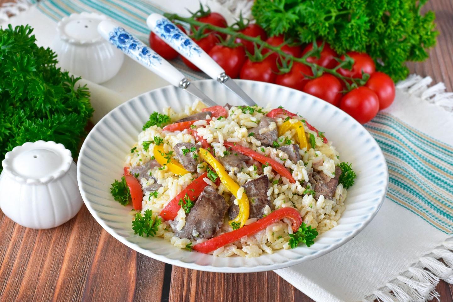 Куриная печень с рисом на сковороде – русское ризотто богато белком и витаминами группы B, благодаря чему поддерживает энергию и здоровье, при этом блюдо сытное и легкоусвояемое.