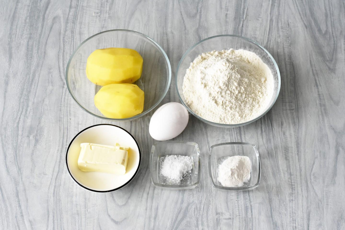 Для начала подготовьте необходимые ингредиенты для теста. Картофель очистите, нарежьте дольками и отварите в кипящей подсоленной воде около 35 минут до готовности. С картофеля слейте воду и остудите.
