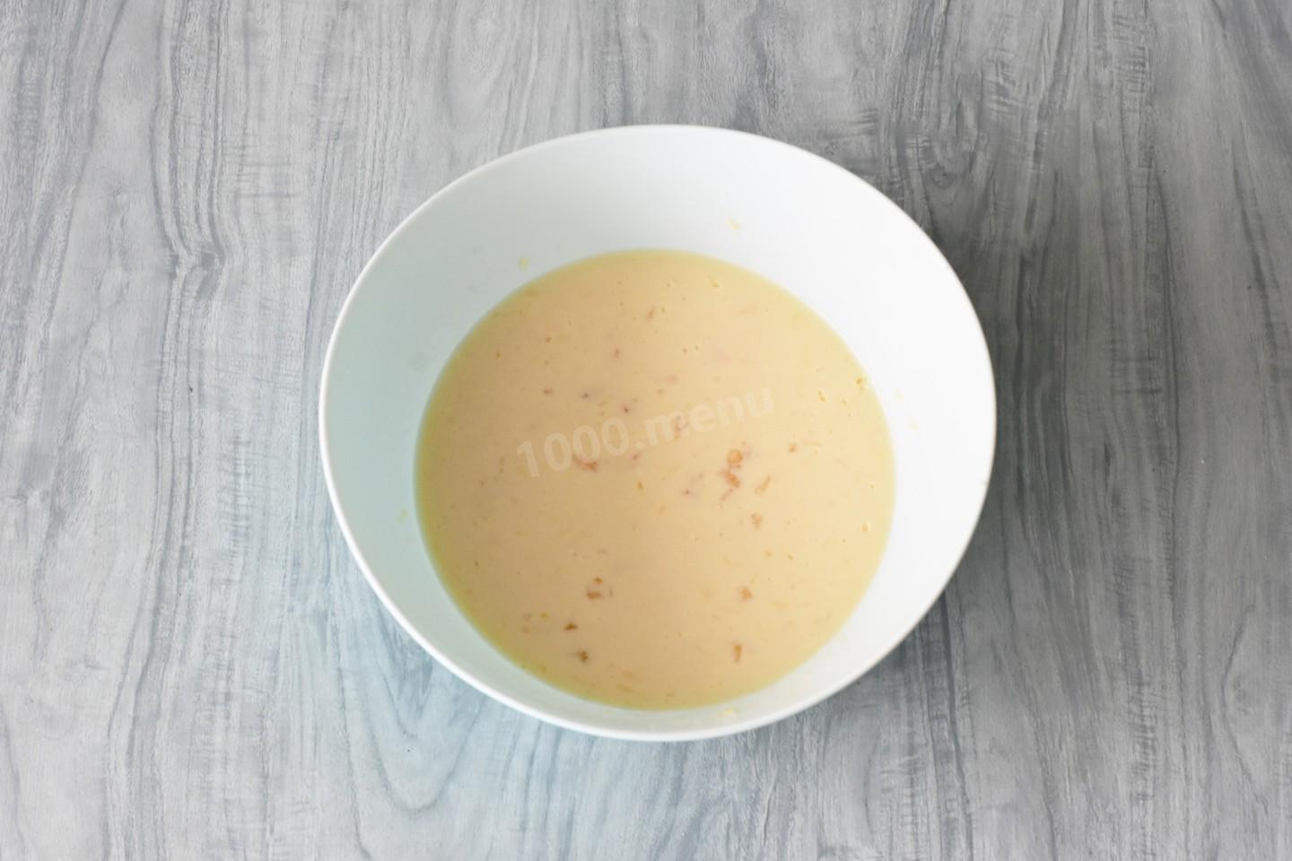 Сыр натрите на мелкой терке. В миске соедините молоко, яйца, сыр и перемешайте до однородности. Сыр для этого блюда подойдет любой — твердый, полутвердый, мягкий, типа моцареллы. Главное, чтобы он был вкусным, качественным, без заменителей молочных жиров и хорошо плавился. Духовку заранее включите на 180℃.