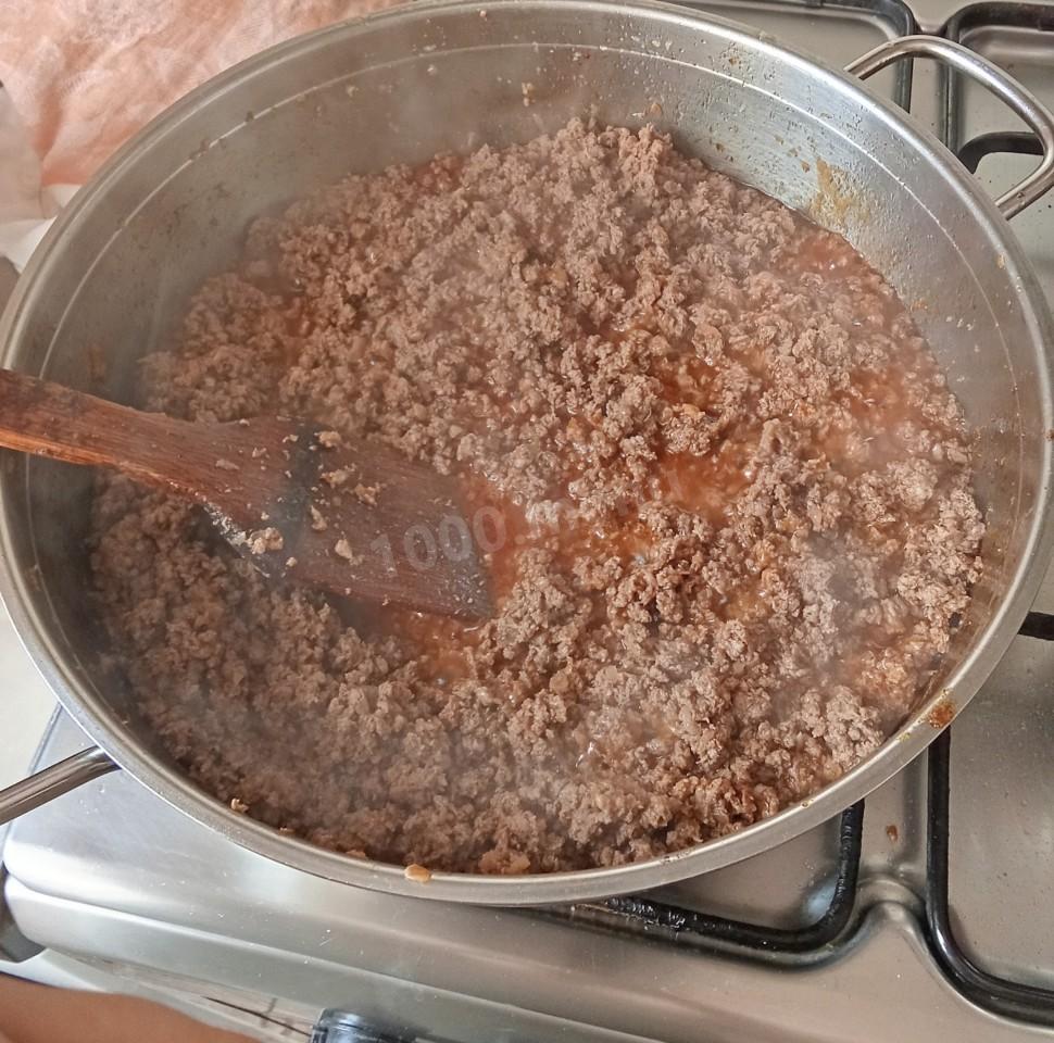 Лук жарим на сливочном масле до золотистого цвета.Мясо добавляем на жареный лук.