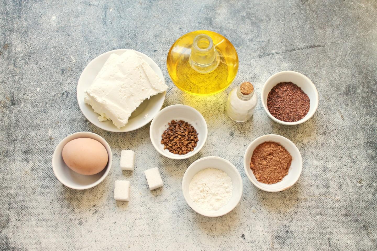 Подготовьте все необходимые ингредиенты. Шоколад натрите на мелкой терке, отложите немного для подачи. Яйцо вымойте в теплой воде и вытрите, ведь на них могут остаться бактерии и микрогрязь. Творог выбирайте качественный, без заменителей молочного жира. С выбором поможет статья по ссылке в конце рецепта. Если творог крупитчатый, можно при желании протереть его через сито или пробить погружным блендером. Растворимый кофе разведите в горячей воде и остудите.