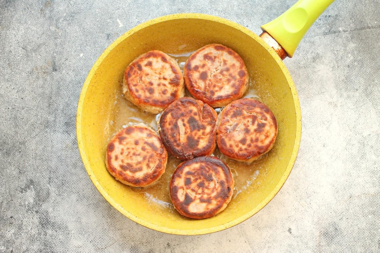 Не давите сильно. Сильное надавливание делает сырники плотными и "резиновыми". Формируйте их аккуратно.