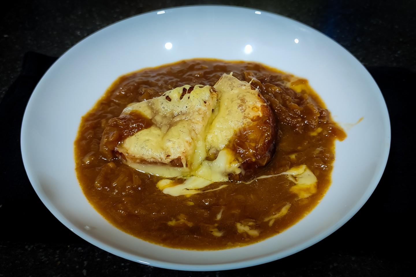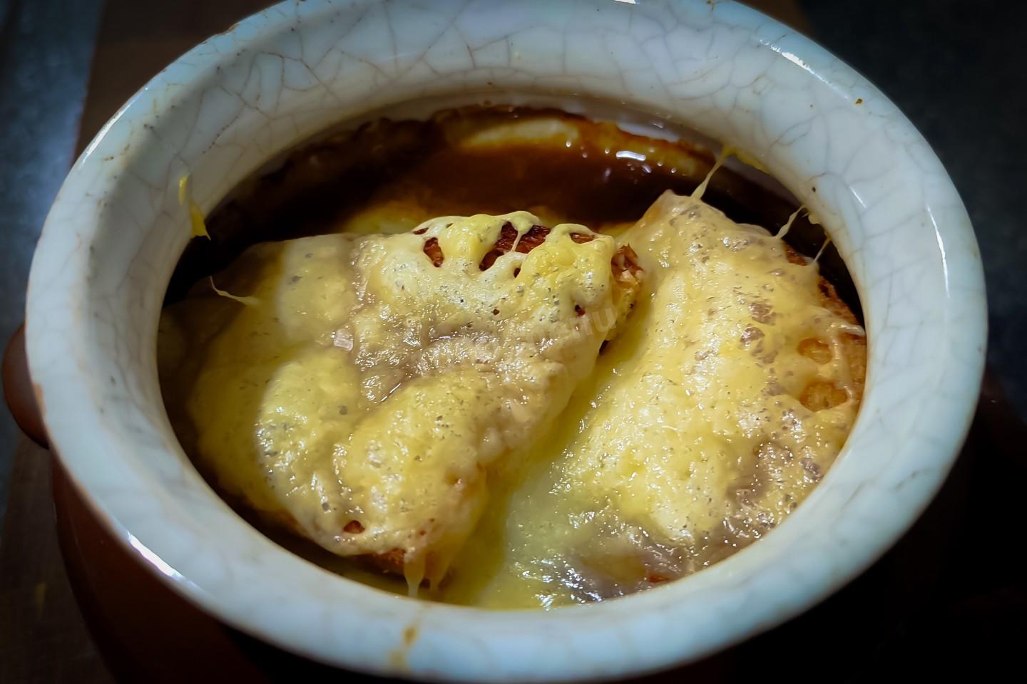 Подавать луковый супчик надо в горячем виде. Подача возможна в горшочке (что считается более правильным) порционно или аккуратно переложить в тарелочку, чтоб батон и сыр оставались сверху.