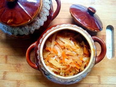 У меня получилось два с половиной порционных горшочка. Хотела половинку горшка распихать по двум другим, но всё же прислушалась к автору и не стала утрамбовывать капусту.