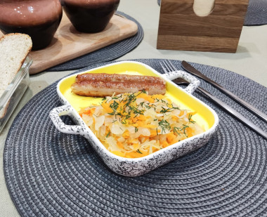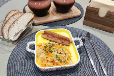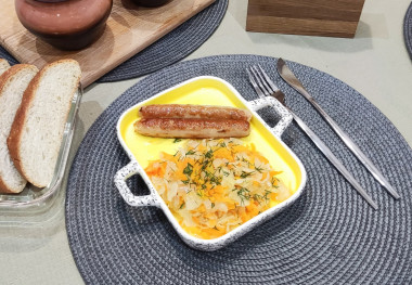 Подала капусту с обжаренными колбасками, немножко в немецком стиле)