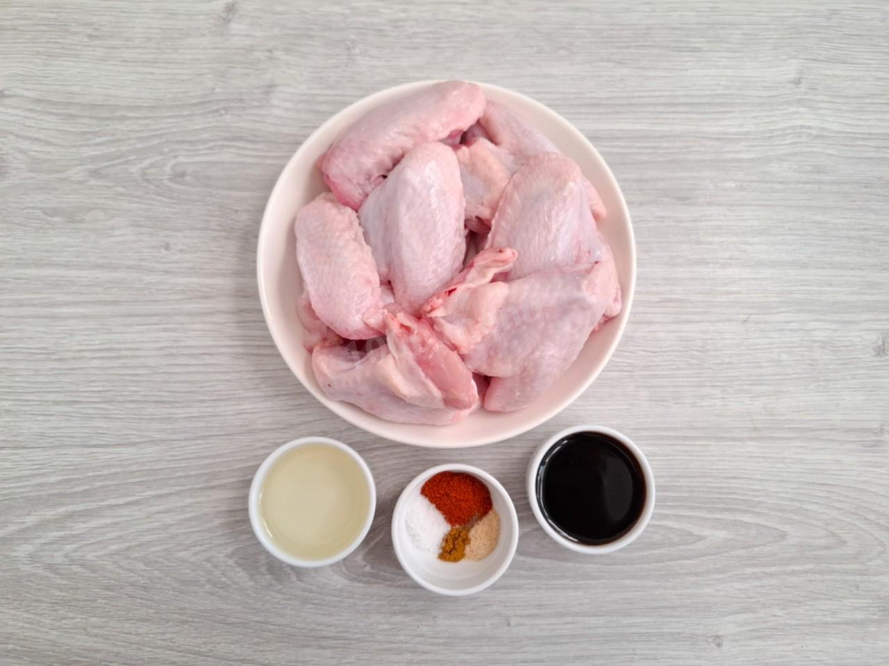 Куриные крылышки промойте в холодной воде и хорошо просушите. При желании удалите кончики крыльев. Крупные крылышки можно разделить по суставу на две части. Выложите крылышки в миску, добавьте растительное масло, соевый соус и выбранные специи, посолите по вкусу. Учитывайте, что соевый соус достаточно соленый. Все хорошо перемешайте, миску затяните пищевой пленкой и оставьте мариноваться примерно на пол часа. Можно убрать миску в холодильник на ночь.