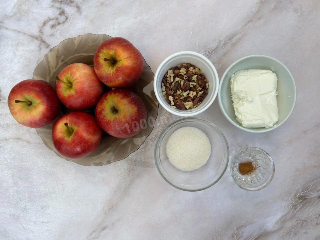 Для начала подготовьте все необходимые ингредиенты. Как правильно выбрать яблоки для запекания с творогом? Яблоки выбирайте кисло-сладкие сорта с плотной кожурой (Семеренко, Гренни Смит, Антоновка). Они не развалятся при запекании. Творог берите любой жирности, главное, чтобы он был натуральный и качественный. С выбором творога и яблок помогут статьи по ссылкам в конце рецепта.