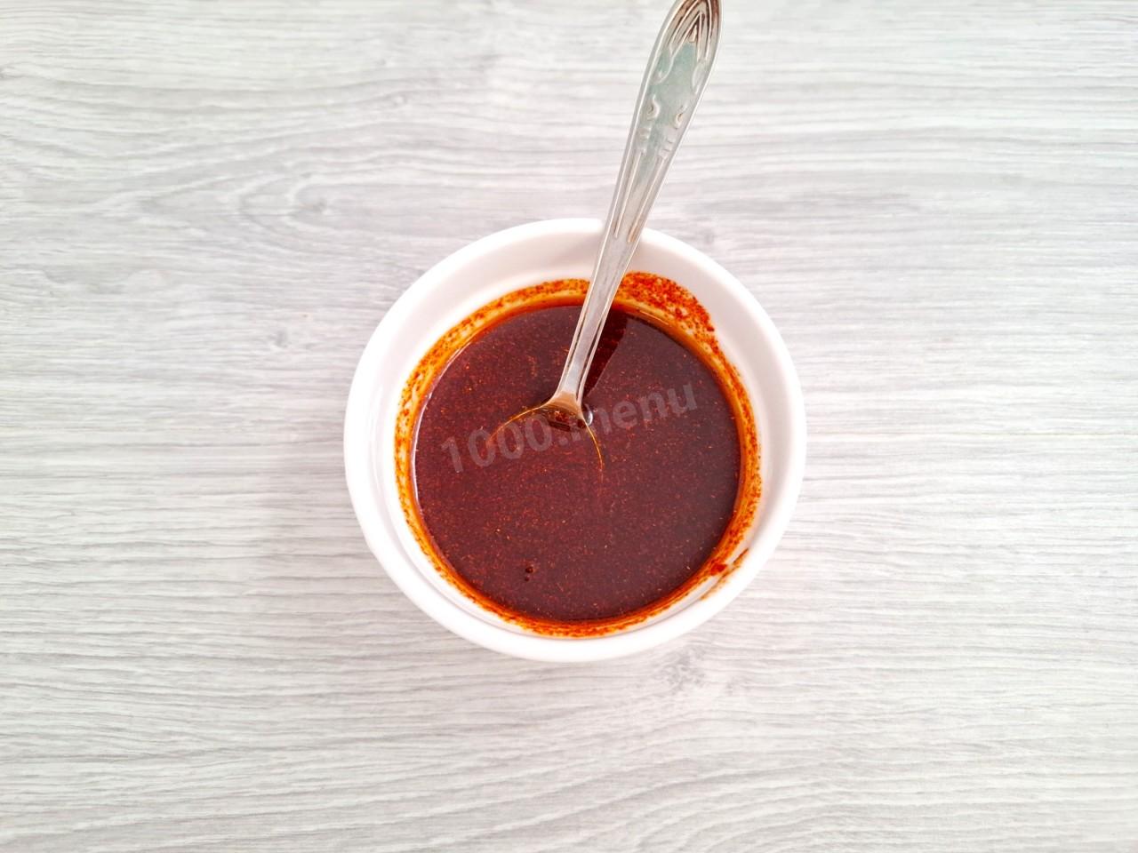 В миске смешайте соевый соус, оливковое масло, паприку, жидкий мед, перец и соль по вкусу. Учитывайте, что соевый соус достаточно соленый. Вместо него можно взять соус терияки.