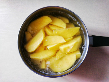 Картофель отварной готовится быстро и просто! Клубни я взяла крупные, мелко резать их не стала, поделила на 8-10 долек. Варила 20 минут, добавив соль и закрыв кастрюлю крышкой. Картошка стала очень мягкой, рассыпчатой, в чем я убедилась, когда попробовала проткнуть ее ножом, проверяя готовность.