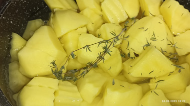 Вспомнилось, как наши знакомые, варя картошку, заправляют ее нерафинированным растительным маслом и зеленью. Особенно вкусно получается летом, в дачный сезон, когда под рукой много свежего укропа, петрушки, базилика.