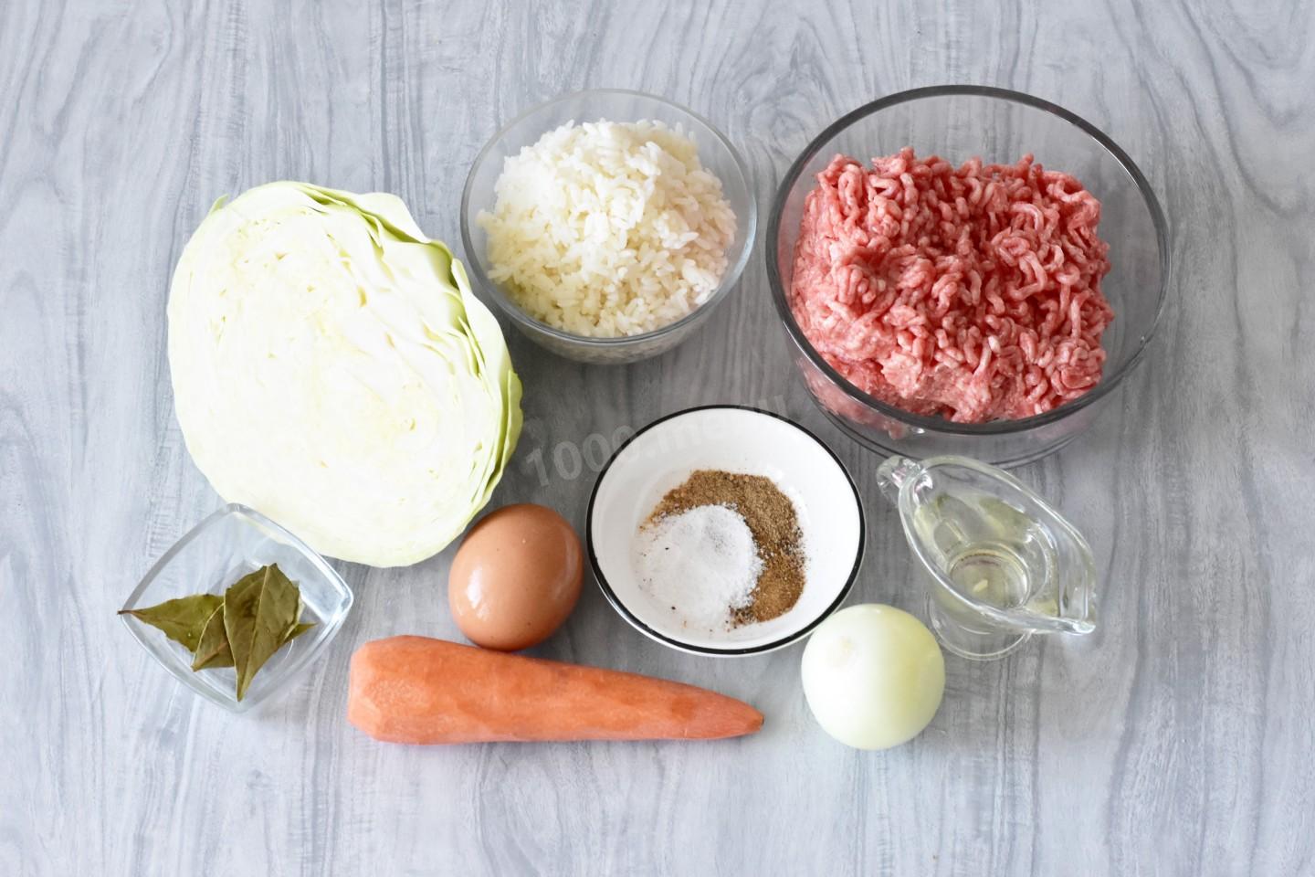Для начала подготовьте необходимые ингредиенты по списку. У меня фарш из говядины, но можно использовать фарш из свинины, курицы, индейки или их сочетаний. Я готовлю в аэрогриле, но это блюдо можно делать в казане или кастрюле на плите или вообще в духовке. Рис заранее отварите около 10 минут до полуготовности в подсоленной воде. О том, какой рис выбрать, а также всё о выборе кастрюли, читайте в материалах по ссылкам под шагами.