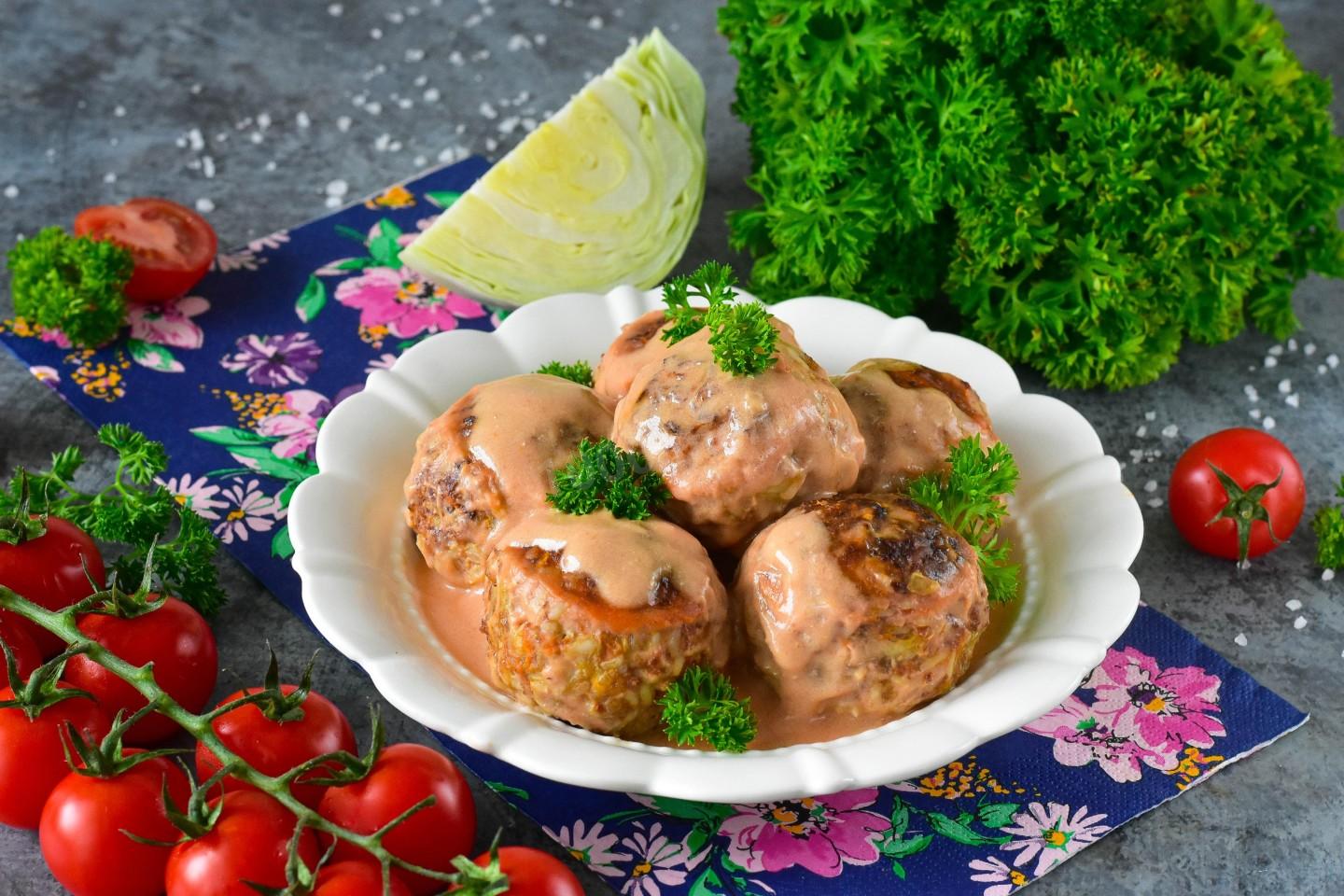 Переложите готовые ленивые голубцы на тарелку, стараясь сохранить их форму. Щедро полейте сверху горячим соусом, в котором они тушились, чтобы блюдо оставалось сочным и ароматным. Украсьте свежей мелко рубленой зеленью — идеально подойдет укроп, петрушка или немного зеленого лука, которые добавят цвет и свежий вкус. Приятного аппетита!