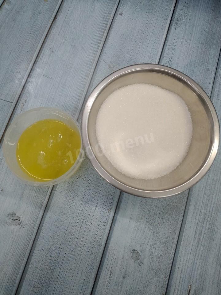 Белок и сахар, кладём в чан или в чашу миксера. Хорошо взбиваем.