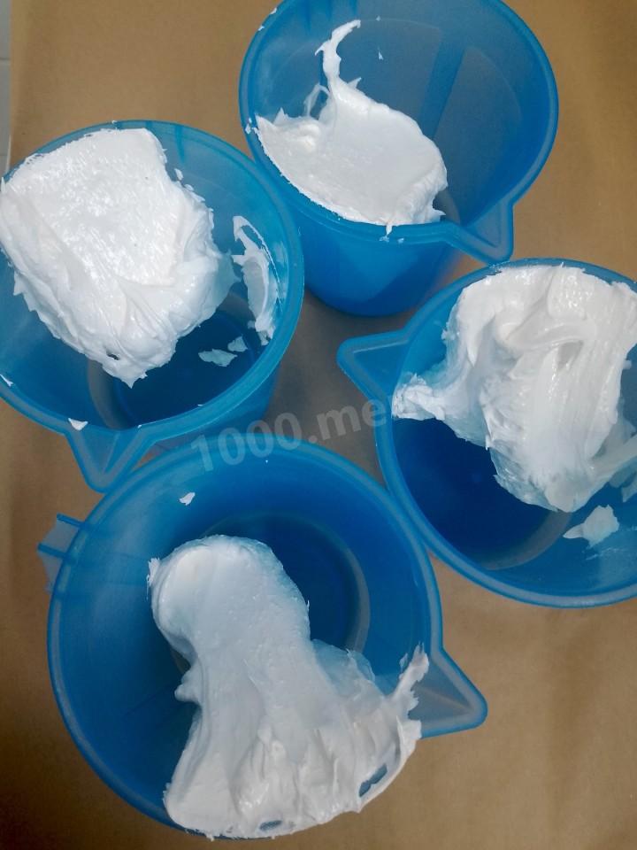 Я решила сделать разноцветные безе, меренгу разделила на четыре равные части.