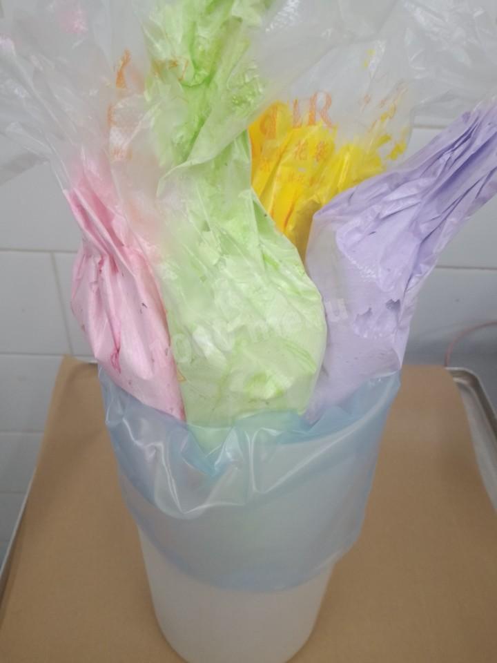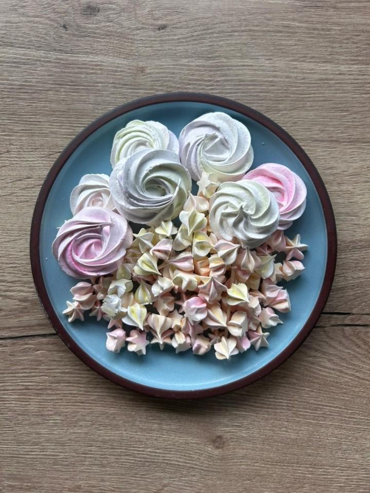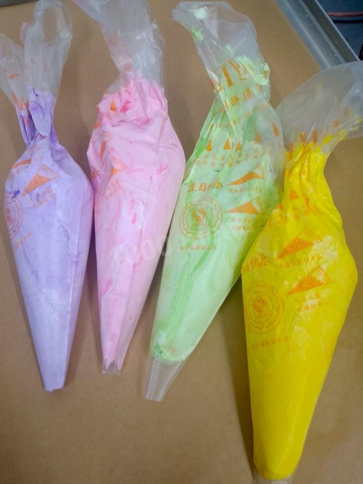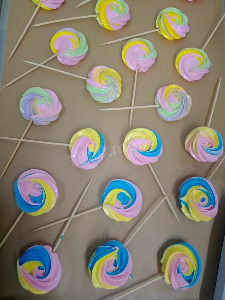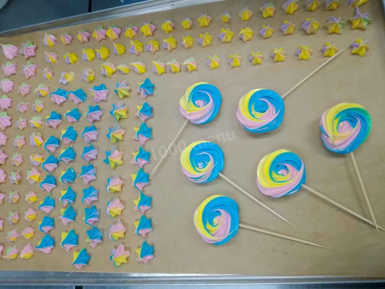 Покрасила меренгу, разложила по мешкам кондитерским(маленькие).
