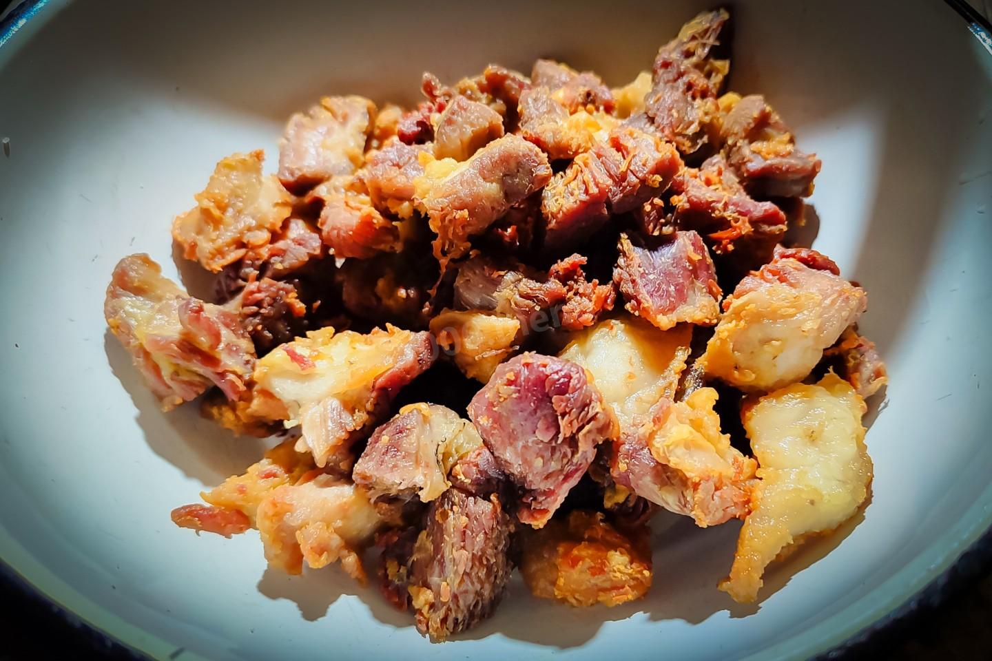 Когда мясо хорошо обжарится со всех сторон, извлечь его из казана в отдельную посуду. Если на стенках останутся прилипшие кусочки мяса, не волнуйтесь в дальнейшем, вся отойдёт от стенок и дна.