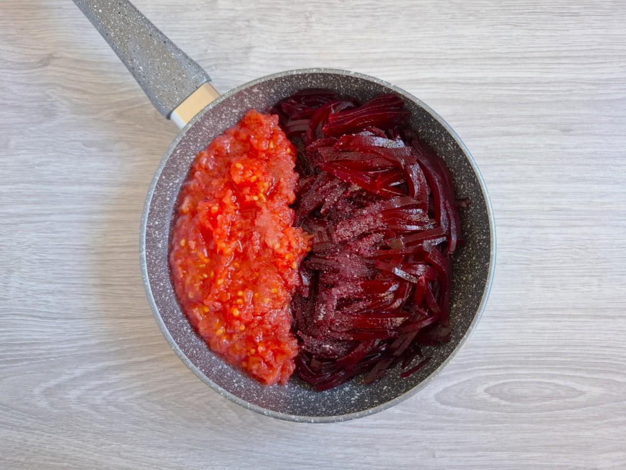 Шаг 7. Как добавить свеклу и помидоры к зажарке?