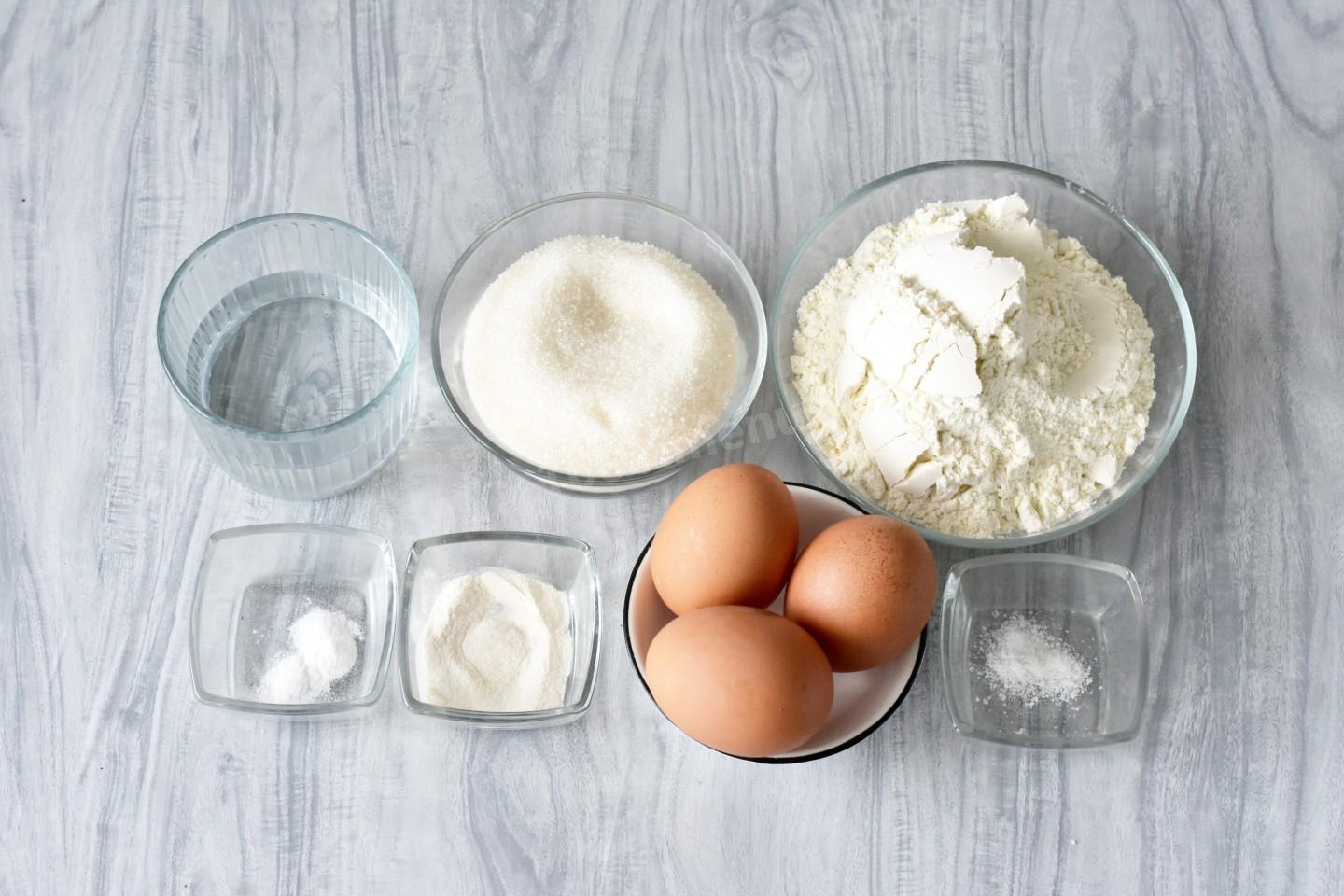 Для начала подготовьте ингредиенты для коржей. Муку берите высшего сорта. Яйца берите крупные отборные. Если яйца мелкие, смело берите 4 штуки. Все продукты должны быть был комнатной температуры. Заранее включите духовку на 150℃.
