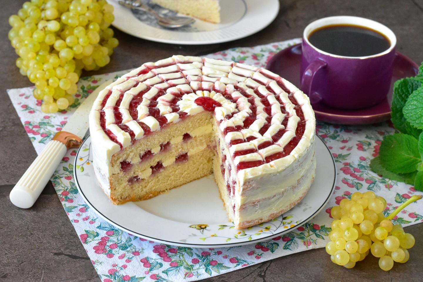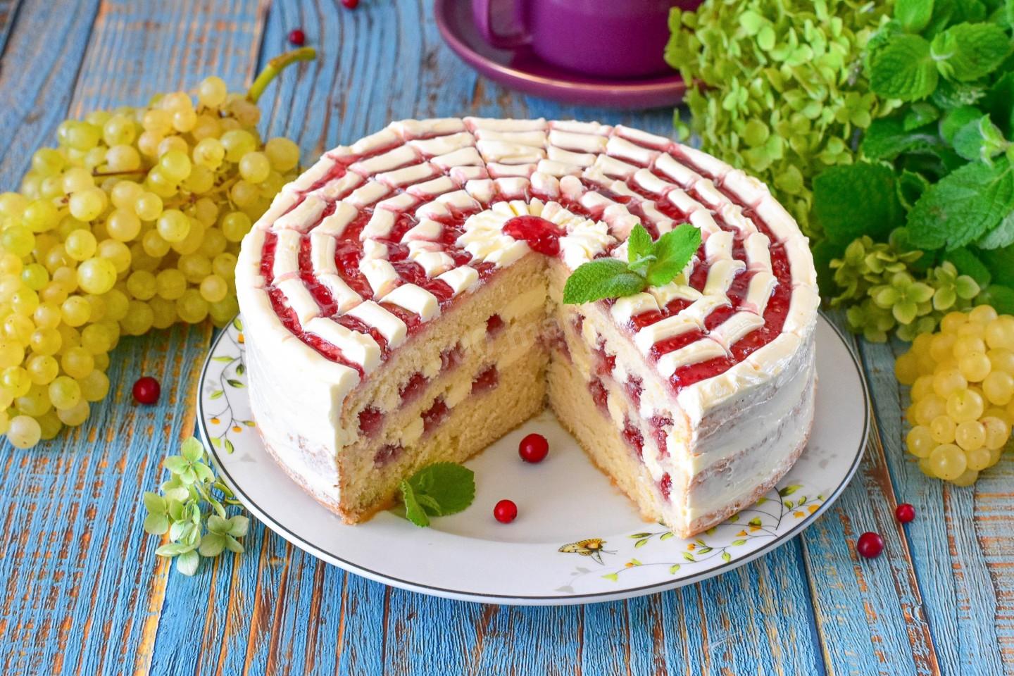 Способ сборки с чередованием крема и варенья не только красив, но и функционален: он предотвращает просачивание жидкой начинки через коржи.