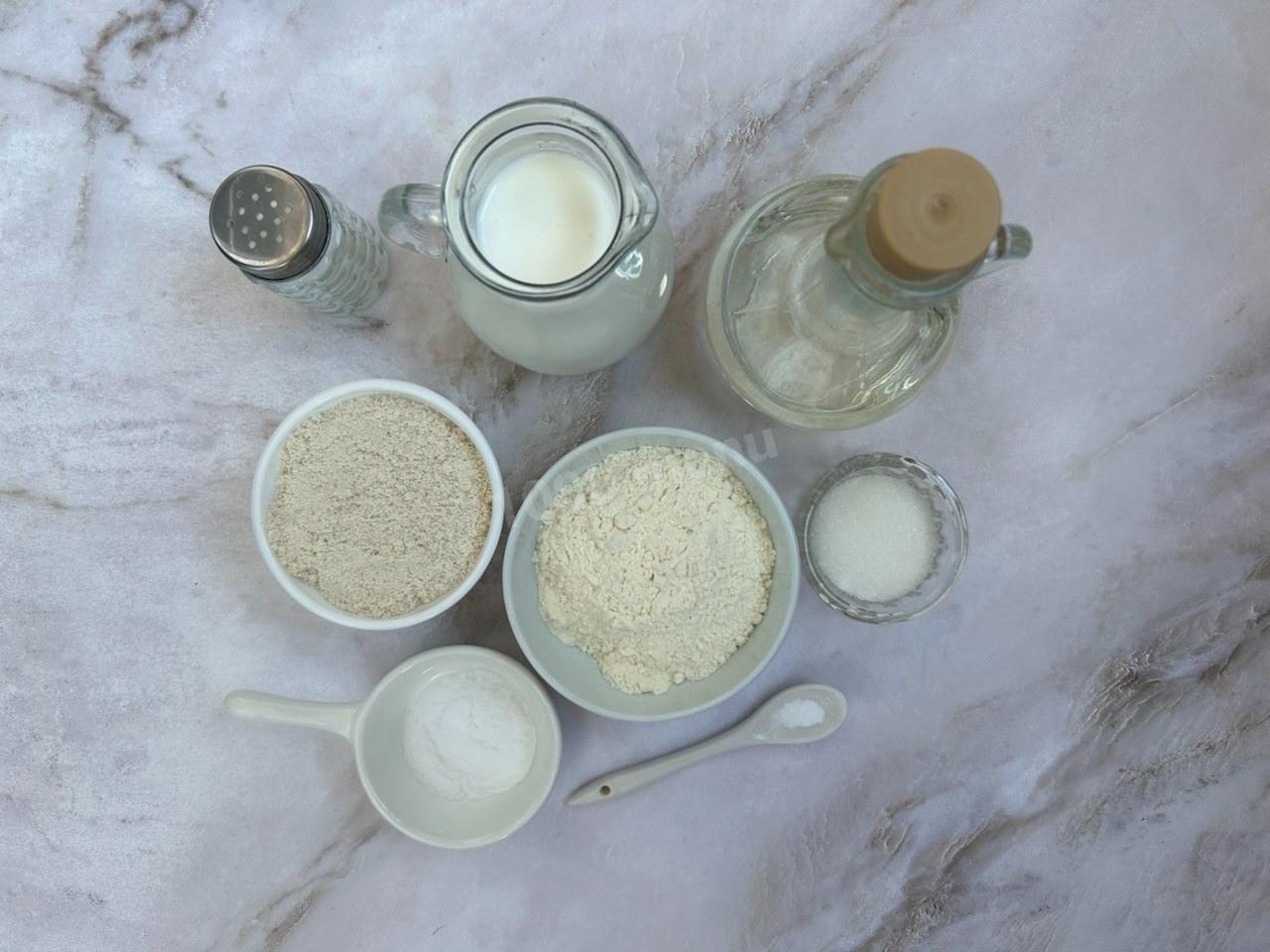 Пшеничная мука: мука цельнозерновая (замените до 1/3 части), овсяные хлопья мелкого помола.