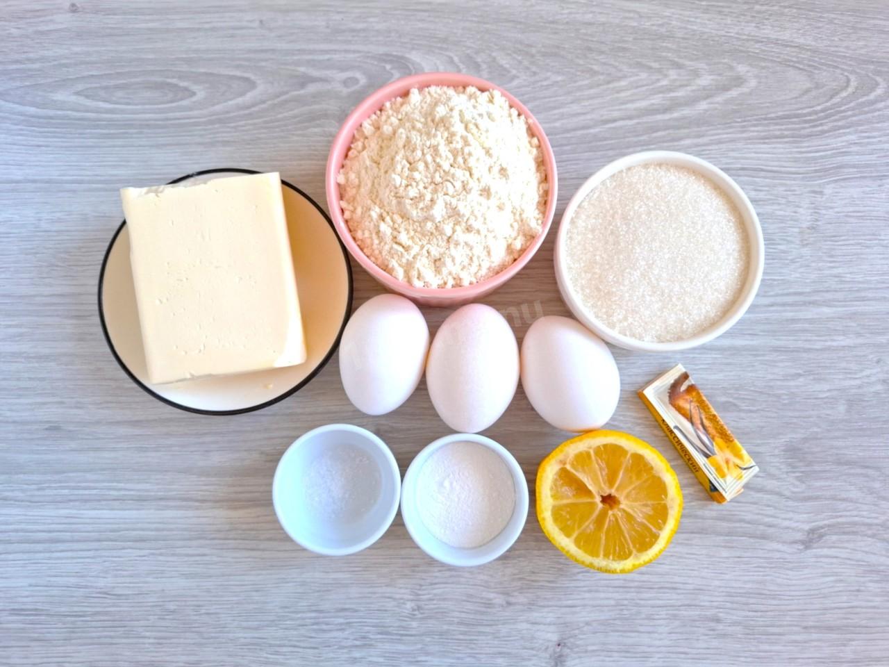 Подготовьте необходимые продукты. Масло заранее выньте из холодильника, чтобы оно размягчилось при комнатной температуре. Количества сахара берите, ориентируясь на свой вкус. Вместо лимона можно взять цедру апельсина или мандарина. Яйца помойте и обсушите. О секретах выпечки идеальных кексов, муке и разрыхлителе читайте в статьях по ссылкам под описанием рецепта.