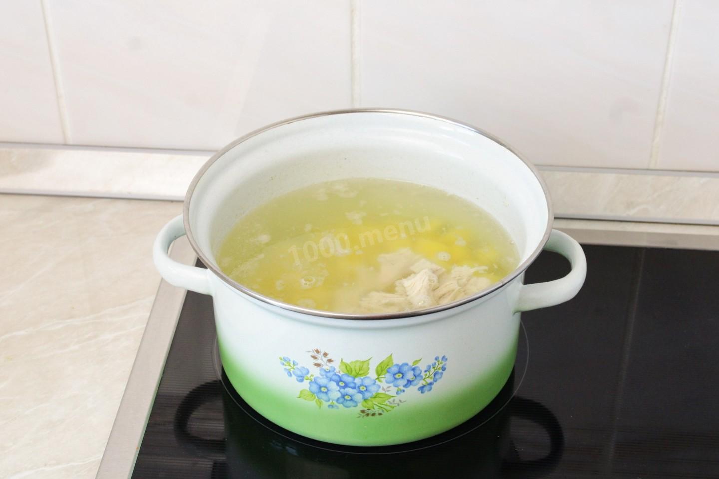 Опустите в бульон картофель и кусочки курицы и варите ориентировочно 10 минут до полуготовности картофеля. Время варки будет зависеть от особенностей сорта картофеля.
