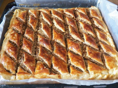 А подруга моя вообще не заморачивалась, приготовила пахлаву из двух слоев.