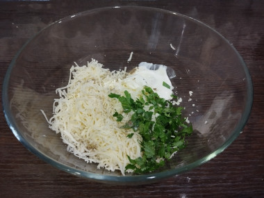 Мягкое сливочное масло смешайте со сметаной до однородности и положите в миску. Твердый сыр натрите на средней терке и положите к сметане. Зелень мелко нарежьте, добавьте в миску и хорошо перемешайте. Поперчите массу и доведите по вкусу на соль, при желании добавьте любимые специи.