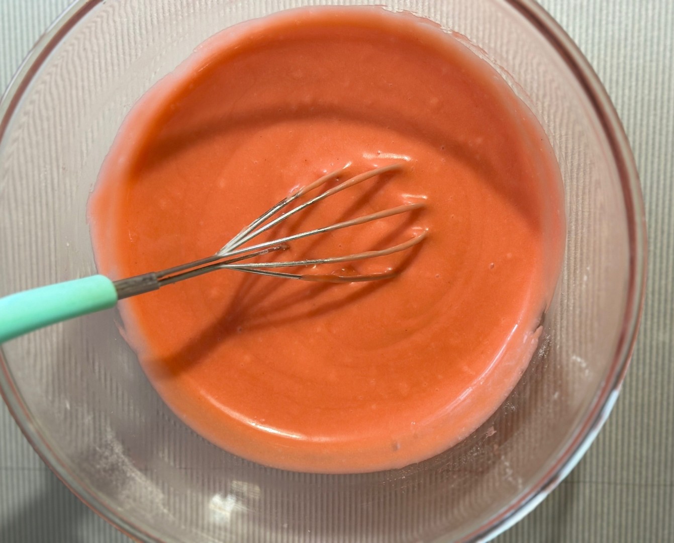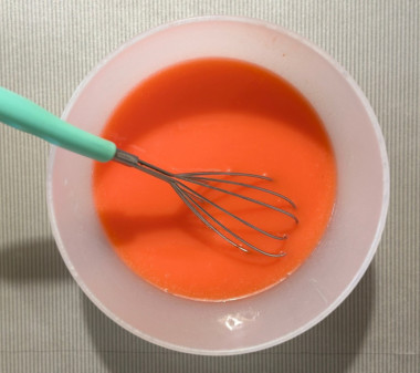 Добавьте красный пищевой краситель и перемешайте до однородности.Шаг 5. Как замесить бисквитное тесто и подготовить к выпеканию?
