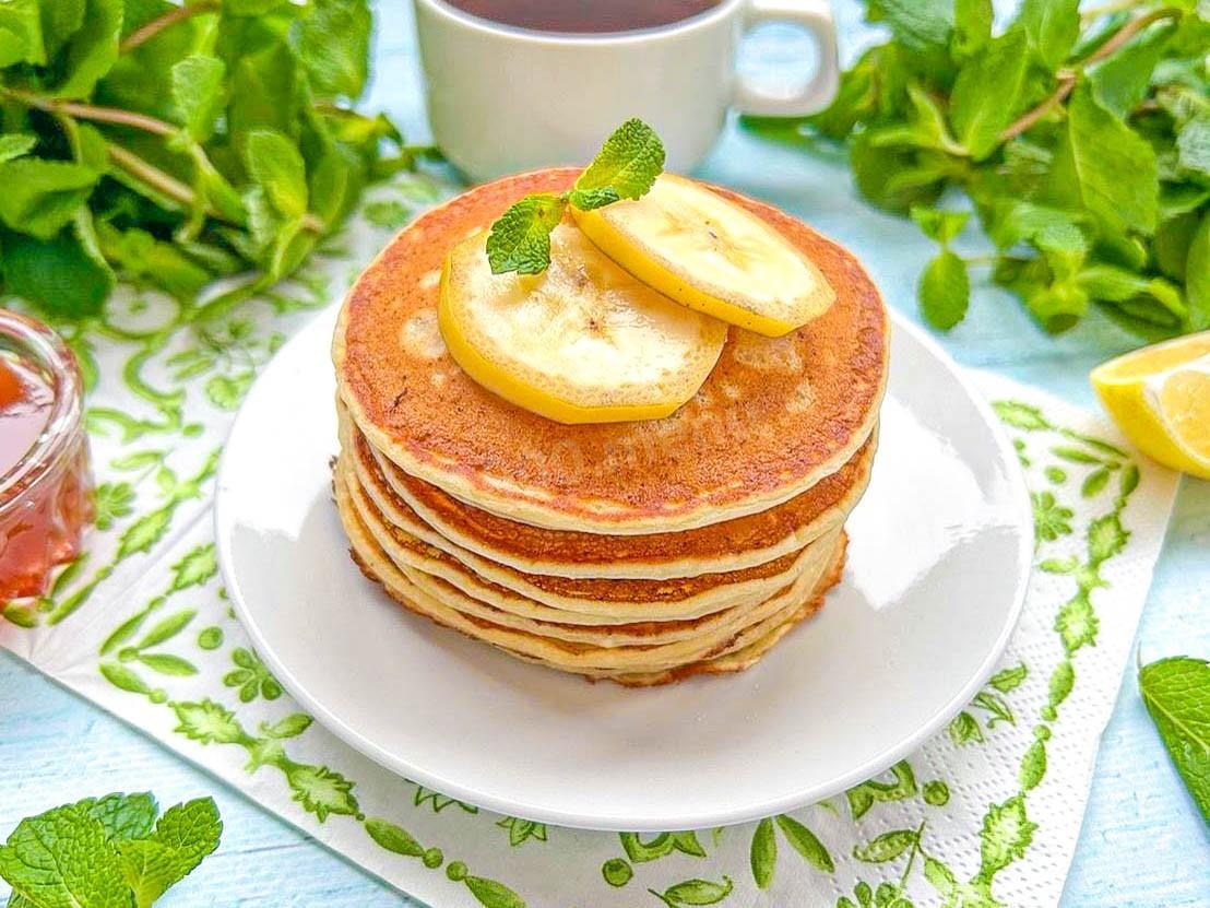 Эти пышные творожные панкейки с бананом — это умный и вкусный завтрак. Творог является источником белка и кальция, а банан дает быстрые углеводы для энергии и калий для сердца. Блюдо получается сытным, но не тяжелым, а приготовление на сковороде без масла снижает его калорийность, что делает его отличным выбором для тех, кто следит за питанием.
