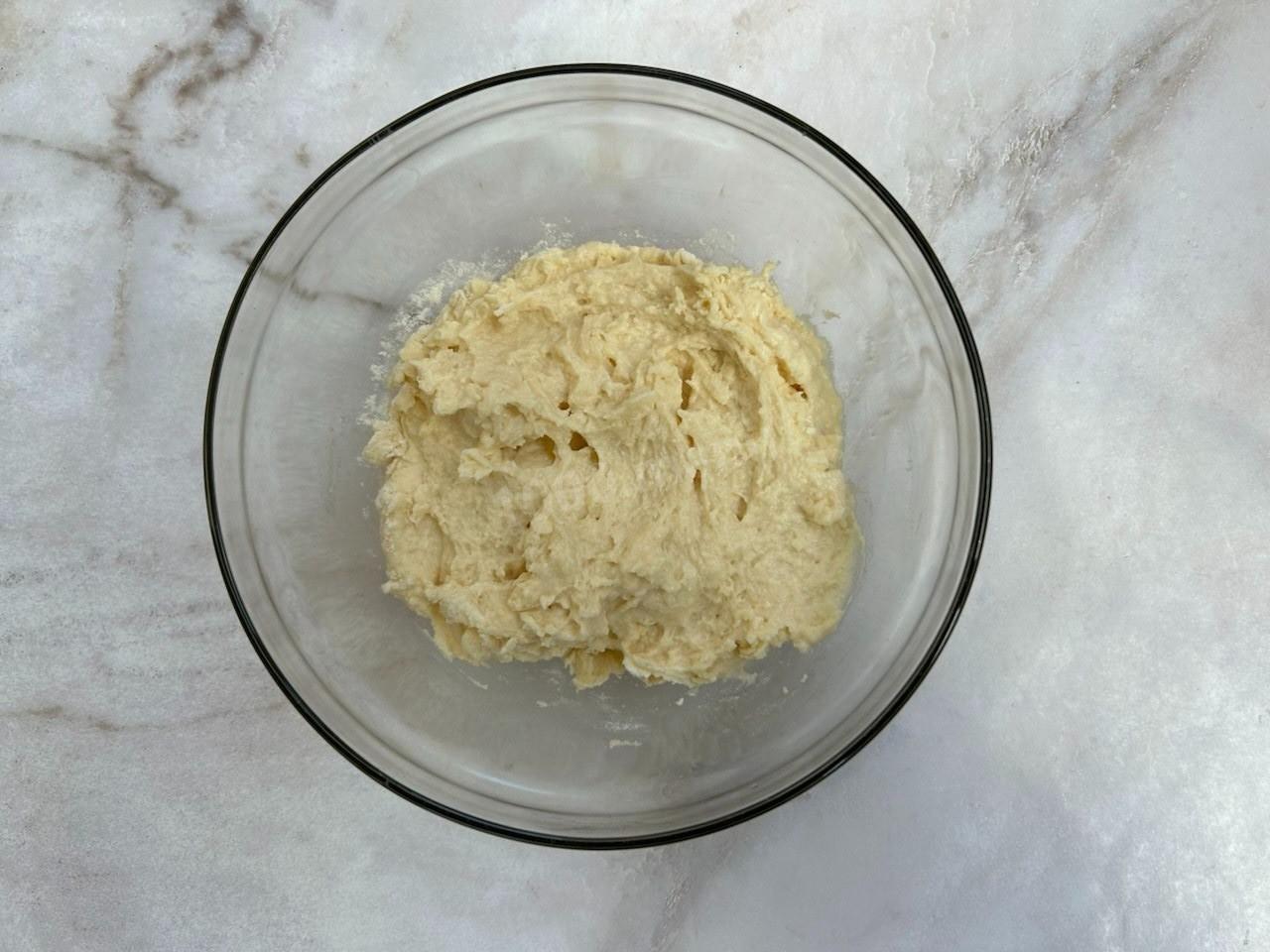 Тесто должно получиться достаточно густым. При необходимости добавьте ещё немного муки.