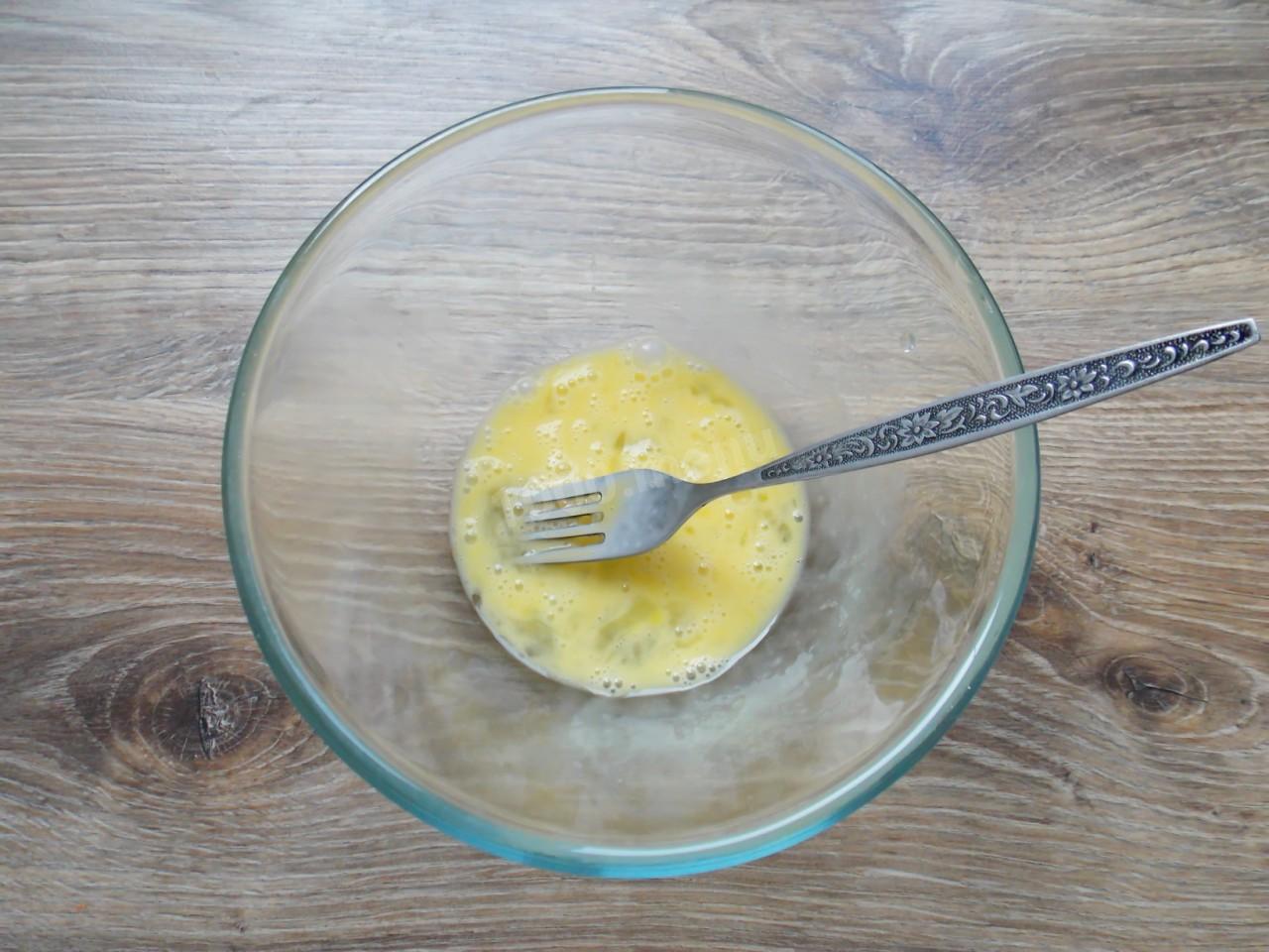 Порезанное куриное филе положите в миску. Яйцо хорошенько вымойте и вытрите, чтобы смыть грязь и бактерии. В миску разбейте яйцо и перемешайте вилкой до однородной массы, добавьте его в курице и перемешайте.