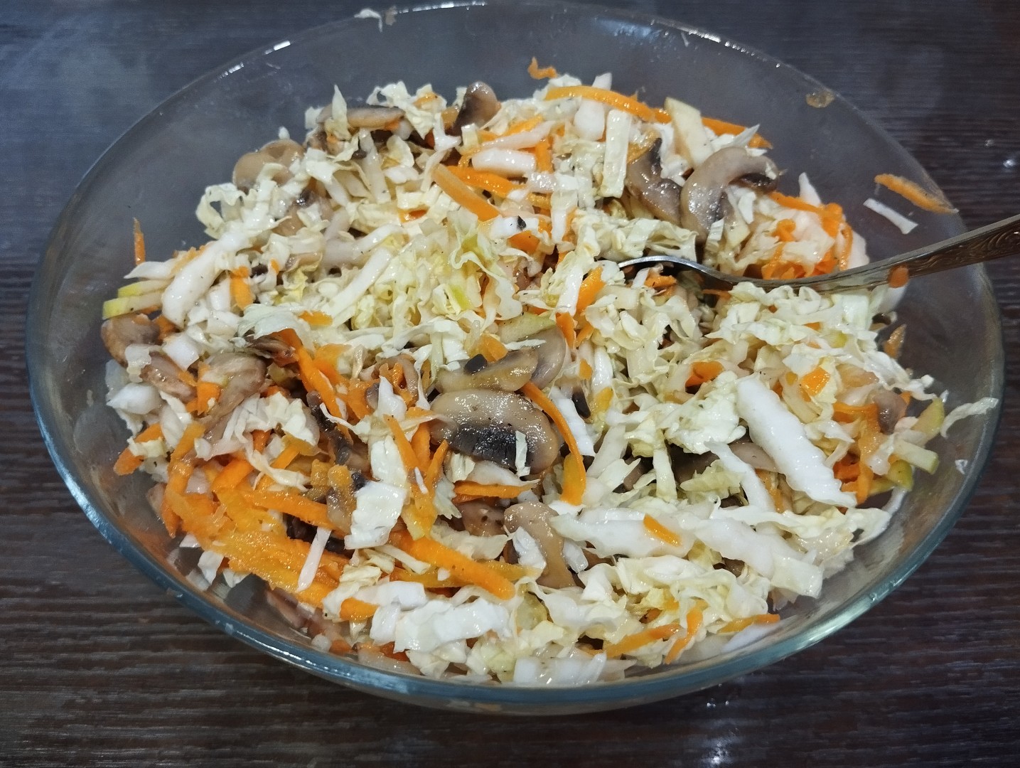 Шаг 1. Как сделать салат из пекинской капусты с жареными грибами шампиньонами?