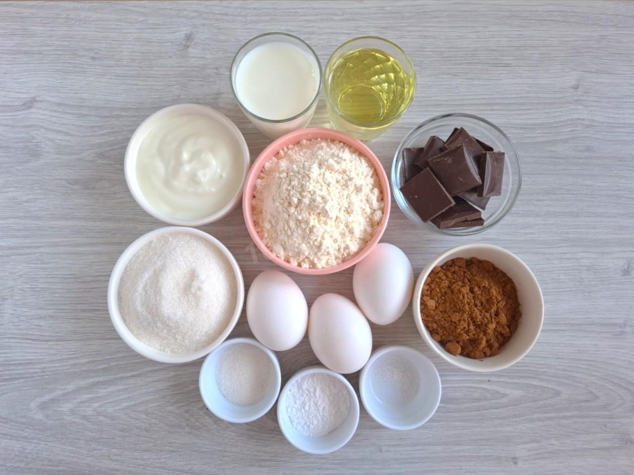 Подготовьте необходимые продукты. Йогурт берите натуральный или замените его сметаной. Шоколад подойдет как темный, так и молочный или горький. Какао используйте качественное, без сахара. Количества сахара берите, ориентируясь на свой вкус. О секретах выпечки идеальных кексов и ванильном сахаре читайте в статьях по ссылкам под описанием рецепта.