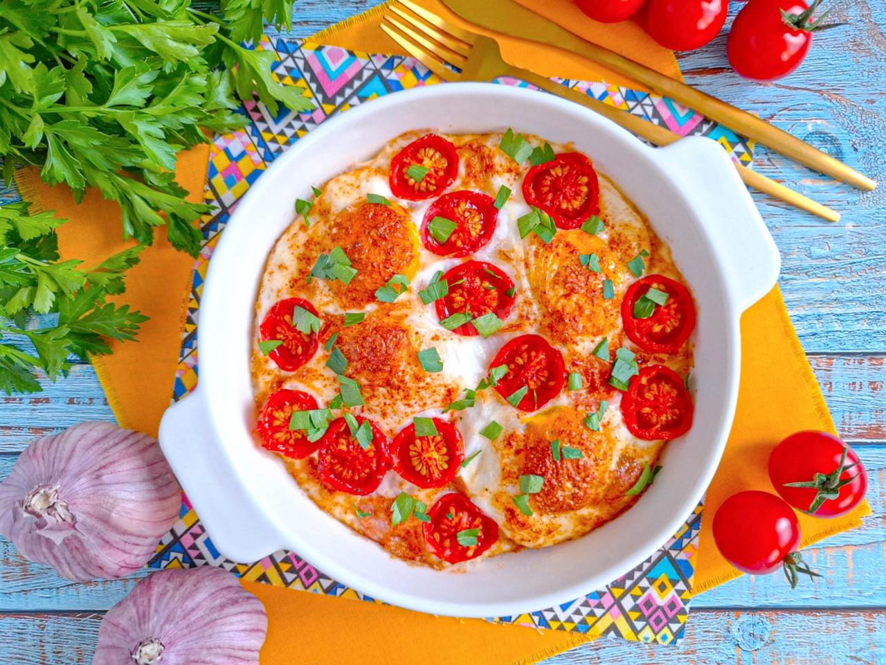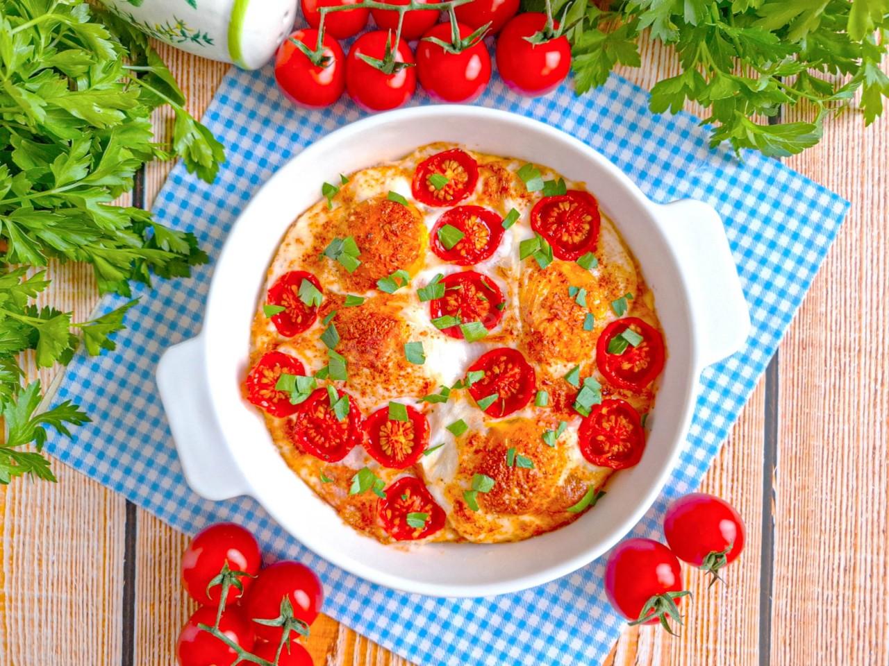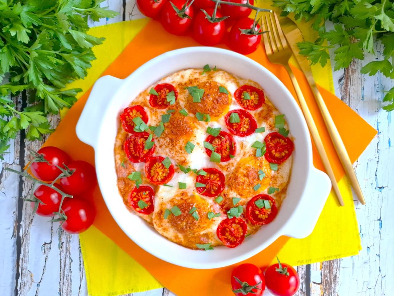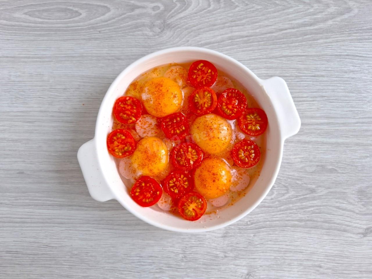 Помидоры черри, запеченные с яйцом, становятся слаще и раскрывают свой вкус ярче.