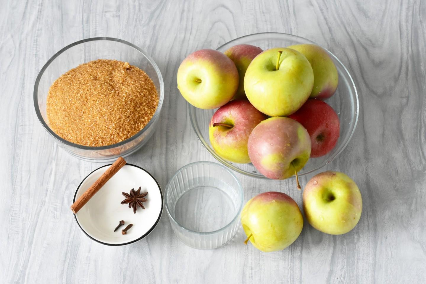 Подготовьте необходимые ингредиенты по списку. Какие яблоки подойдут для этой заготовки? Яблоки лучше взять кисло-сладкие и рыхлые, чтобы они быстрее разварились. О выборе сорта яблок, а также много другой полезной и важной информации о яблоках вы узнаете, прочитав статью в конце рецепта. Тростниковый сахар можете заменить на обычный.