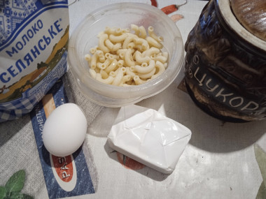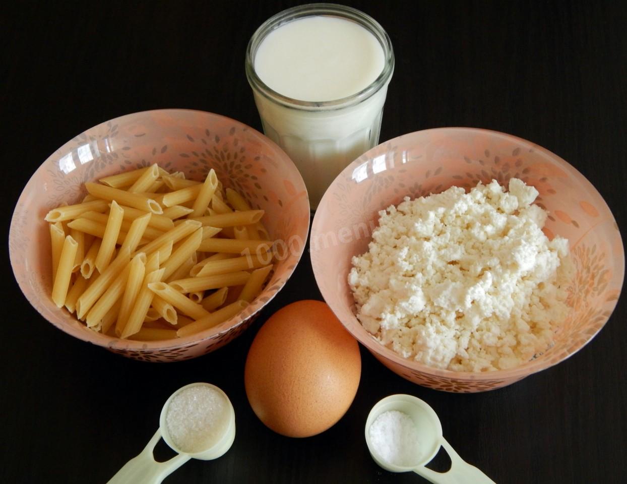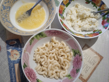 Как сделать запеканку из макарон с творогом? Подготовьте ингредиенты.
