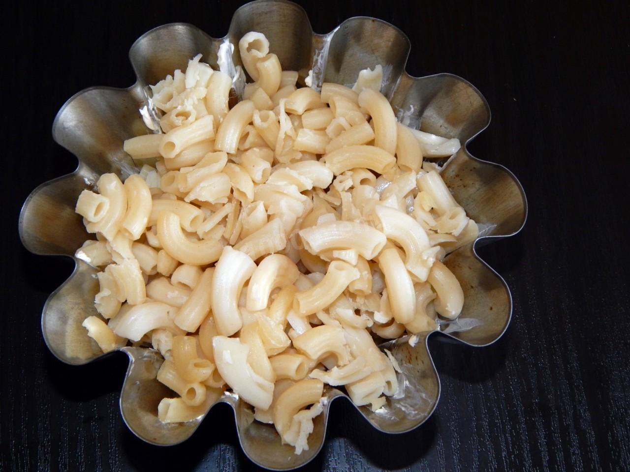 Макароны отварите в подсоленной воде, воду слейте. Макароны высыпьте в смазанную маслом форму.
