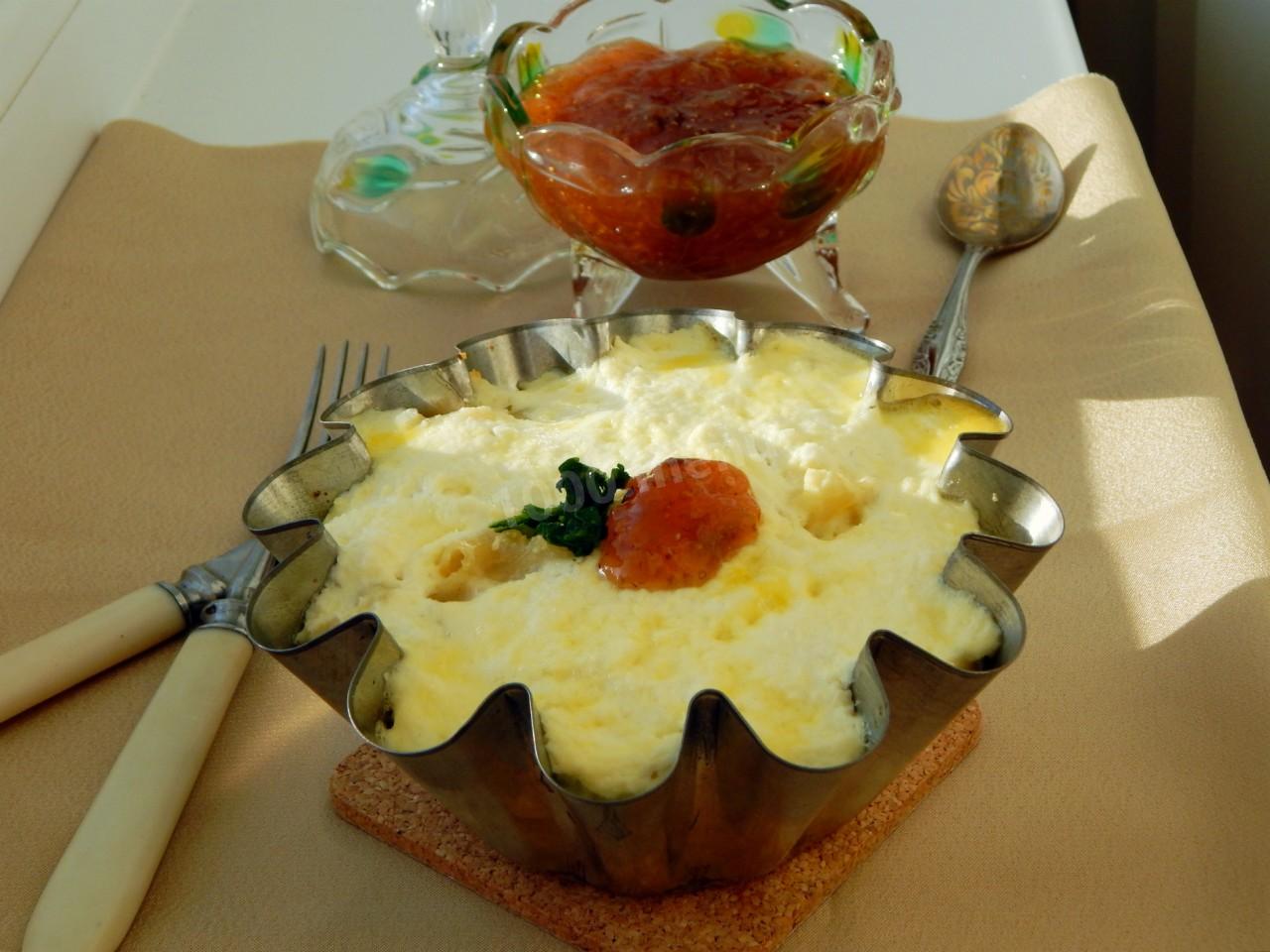 Когда запеканка зарумянится, выньте ее. Подавайте с клубничным либо другим джемом или сметаной. Приятного аппетита!