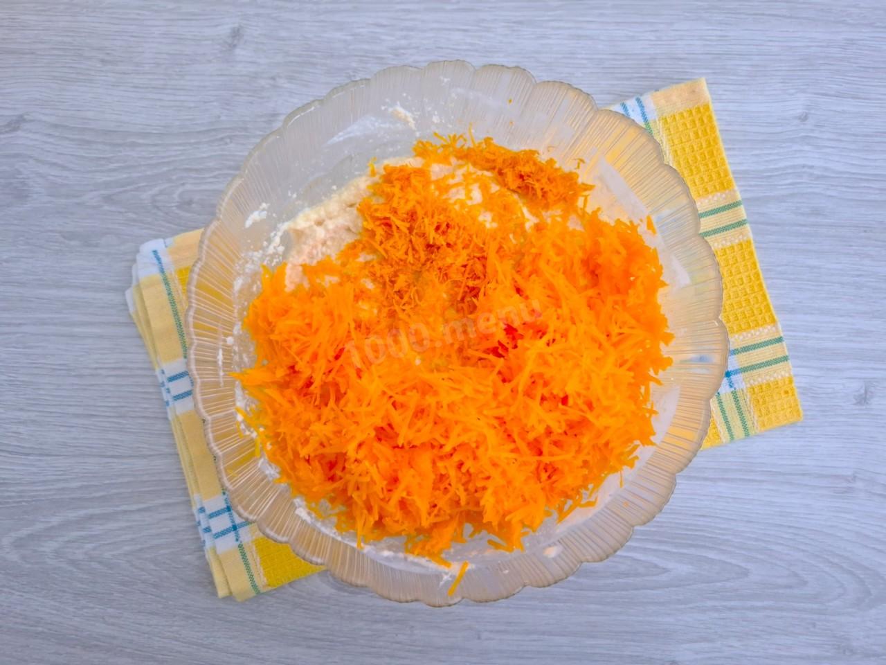 Апельсин и тыкву хорошо помойте и обсушите. С апельсина снимите цедру тонким слоем, я использовала терку со средними зубцами. Сам апельсин отложите. Тыкву нарежьте на куски, очистите от кожуры и натрите на терке со средними зубцами или измельчите в блендере. Тертую тыкву, цедру, сахар и соль добавьте к набухшей манке и тщательно перемешайте. Добавьте в тесто разрыхлитель и соду.