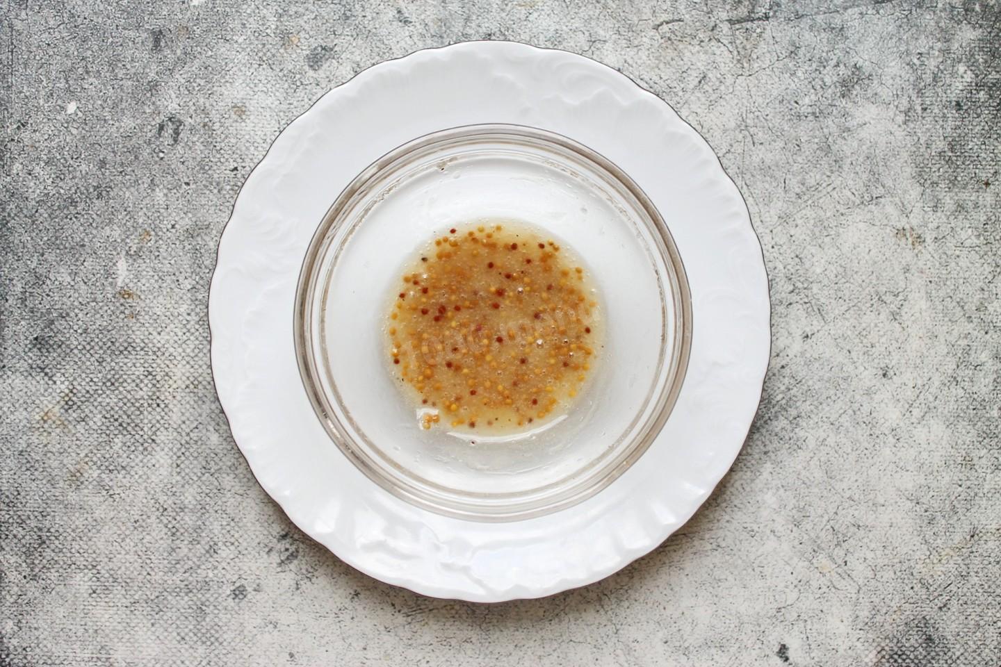 Горчица зернистая: подойдет дижонская, баварская сладкая или даже обычная столовая (но в меньшем количестве).