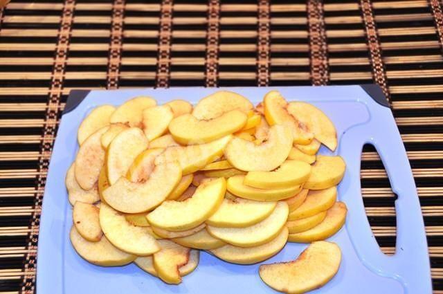 Айву вымойте, очистите от кожуры, разрежьте, удалите сердцевину. Нарежьте на тонкие дольки.